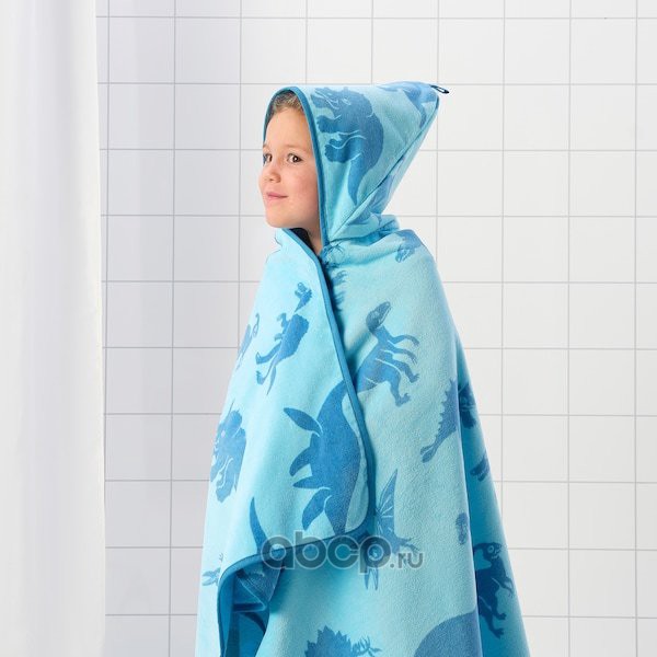 JÄTTELIK ЙЭТТЕЛИК Полотенце с капюшоном, динозавр/синий 140X70см