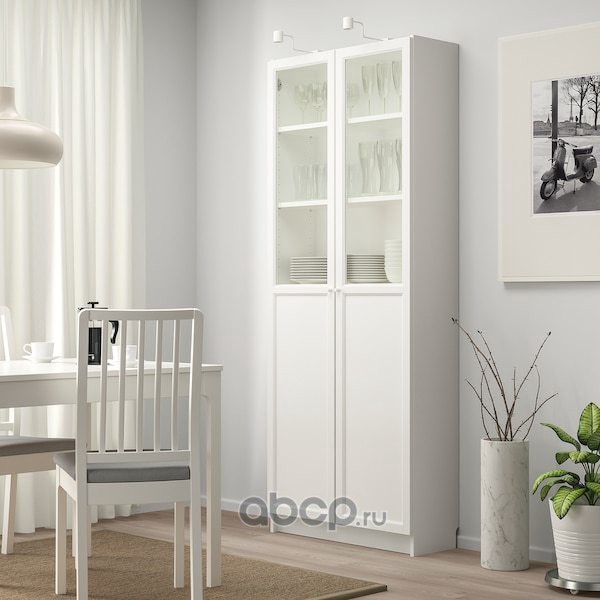 BILLY БИЛЛИ / OXBERG ОКСБЕРГ Стеллаж с дверьми, белый 80X30X202см