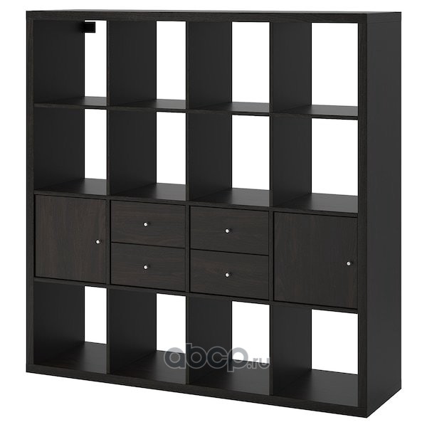 KALLAX КАЛЛАКС Стеллаж с 4 вставками, черно-коричневый 147X147см