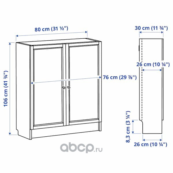BILLY БИЛЛИ / OXBERG ОКСБЕРГ Стеллаж с дверьми, белый 80X30X106см