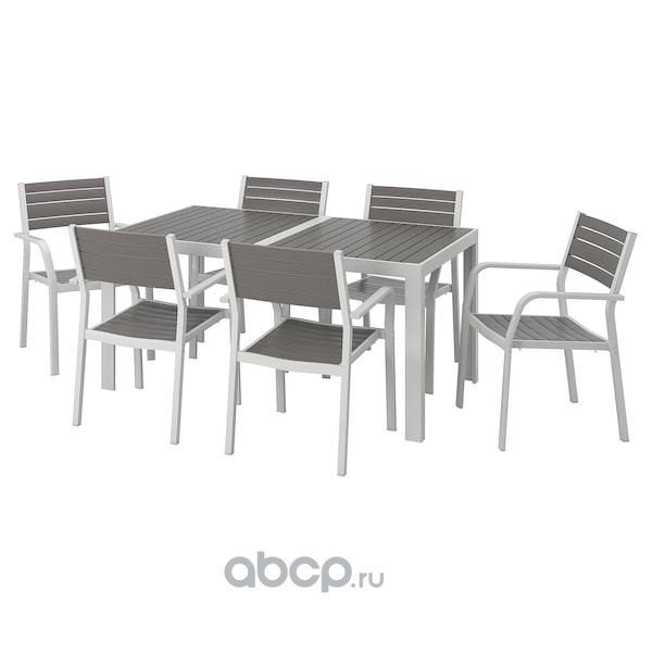 SJÄLLAND ШЭЛЛАНД Стол+6 кресел,д/сада, темно-серый/светло-серый 156X90см