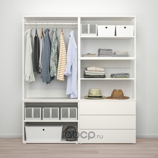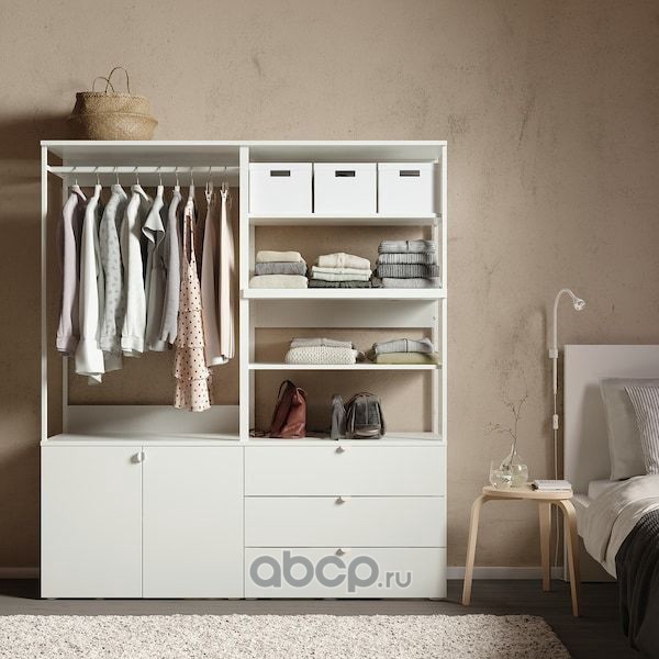 OPPHUS ОПХУС Гардероб 2-дверный+3 ящика, белый/Фоннес белый 160X42X181см