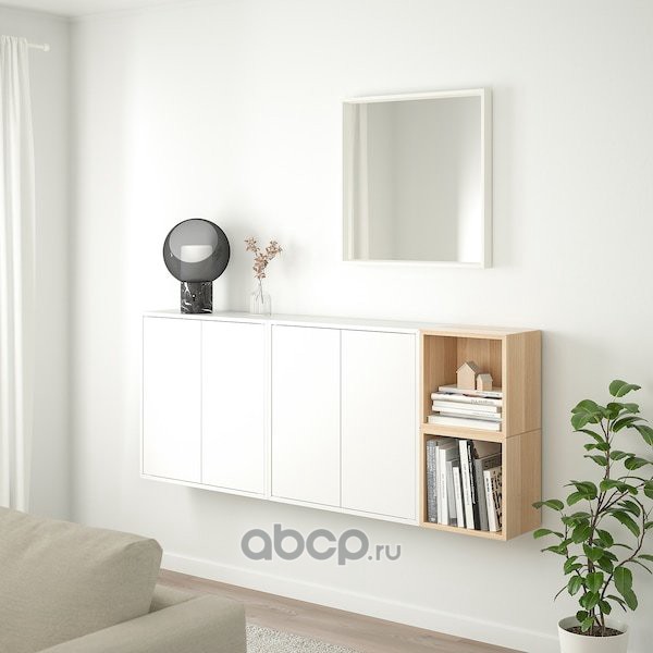 EKET ЭКЕТ Комбинация настенных шкафов, белый/под беленый дуб 175X25X70 см