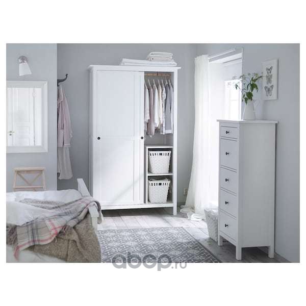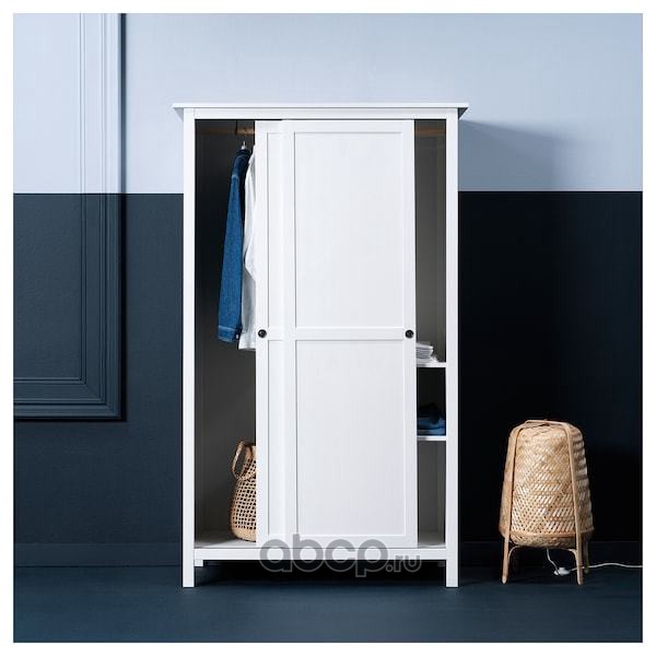 HEMNES ХЕМНЭС Гардероб с 2 раздвижными дверцами, белая морилка 120X197см