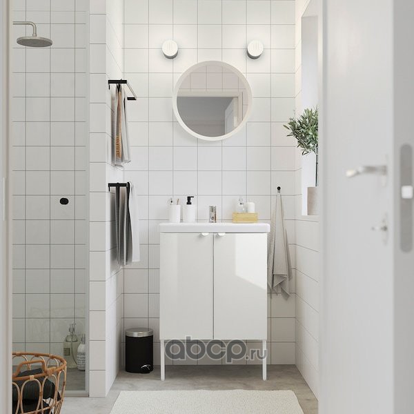 FISKÅN ФИСКОН Шкаф под раковину с 2 дверцами, глянцевый/белый 60X40X60см