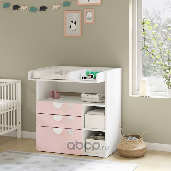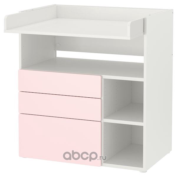 SMÅSTAD СМОСТАД Пеленальный стол, белый бледно-розовый/с 3 ящиками 90X79X100см