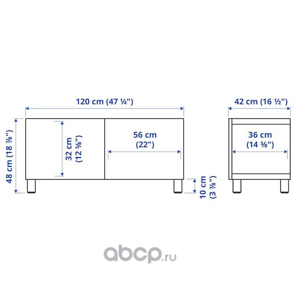 BESTÅ БЕСТО Тумба под ТВ, с дверцами, белый/Лаппвик/стуббарп белый 120X42X48см