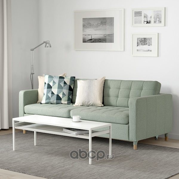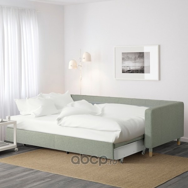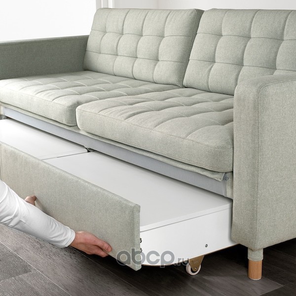 LANDSKRONA ЛАНДСКРУНА 3-местный диван-кровать, Гуннаред светло-зеленый/дерево