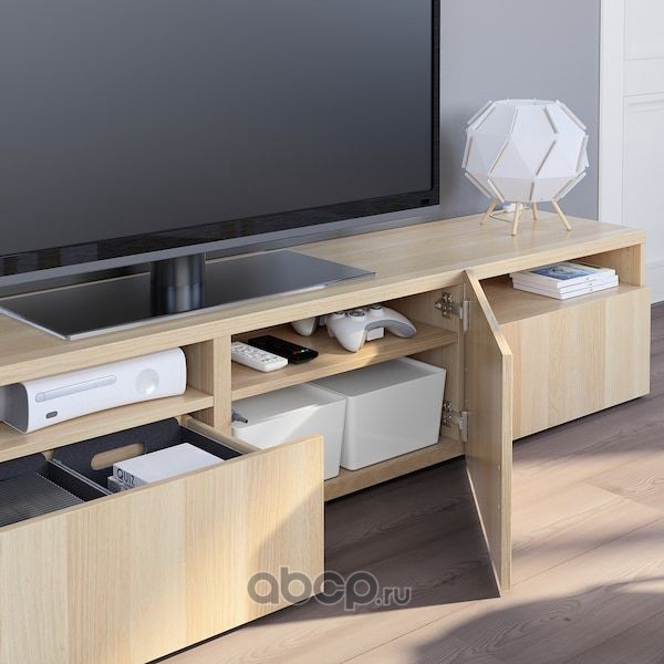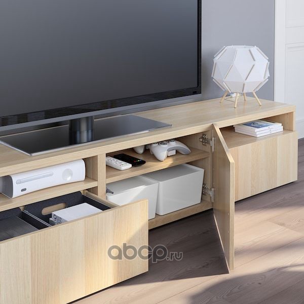 BESTÅ БЕСТО Тумба под ТВ, под беленый дуб/Лаппвикен под беленый дуб 180x42x39 см/кг