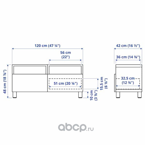 BESTÅ БЕСТО Тумба под ТВ, с ящиками, белый/БЕРГСВИКЕН/ОСАРП бежевый 120X42X48см