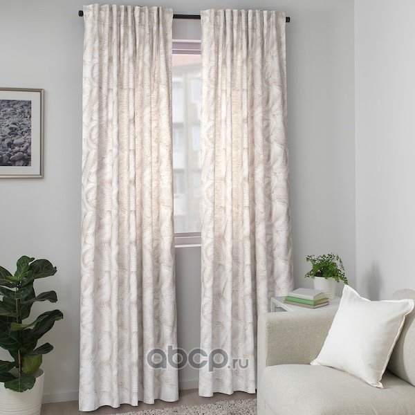PALMFJÄRIL ПАЛМФЬЕРИЛ Гардины, 2 шт., естественный/цветочный орнамент 145X300см