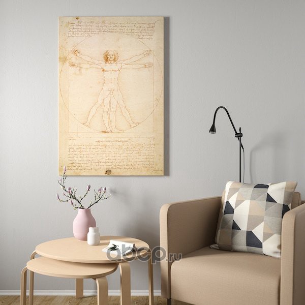 BJÖRKSTA БЬЁРКСТА Картина с рамой, Витрувианский человек/цвет алюминия 78X118см