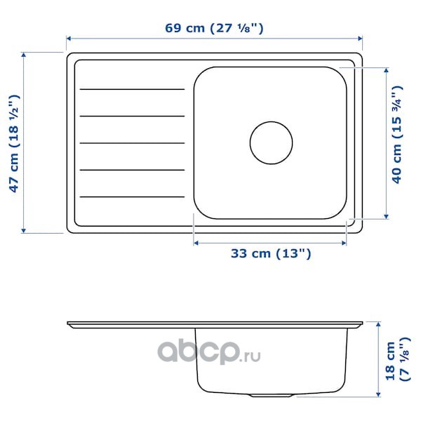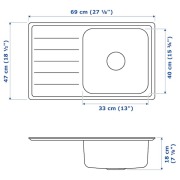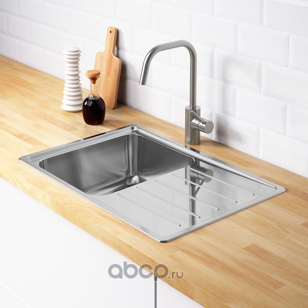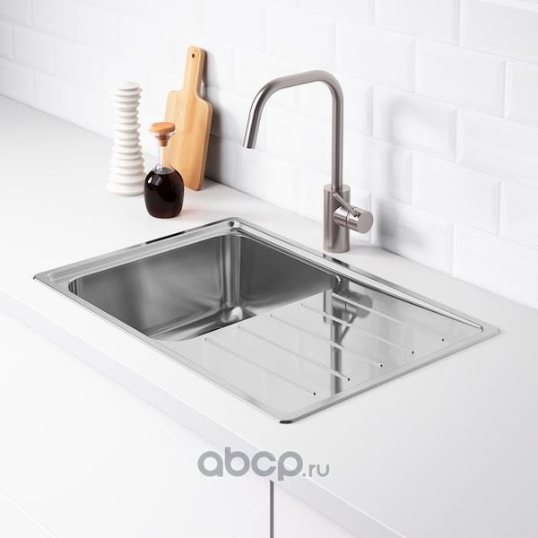 VATTUDALEN ВАТТУДАЛЕН Одинарная врезная мойка с крылом, нержавеющ сталь 69X47см