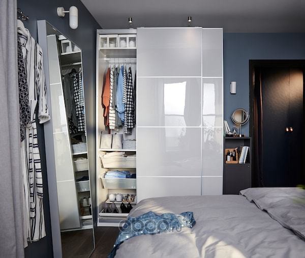 HOKKSUND ХОККСУНД Пара раздвижных дверей, глянцевый светло-серый 200X236 см