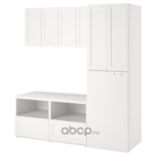 SMÅSTAD СМОСТАД Комбинация д/хранения, белый с рамой/с выдвижным модулем 180x57x196см