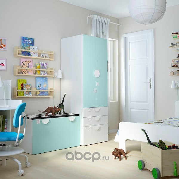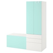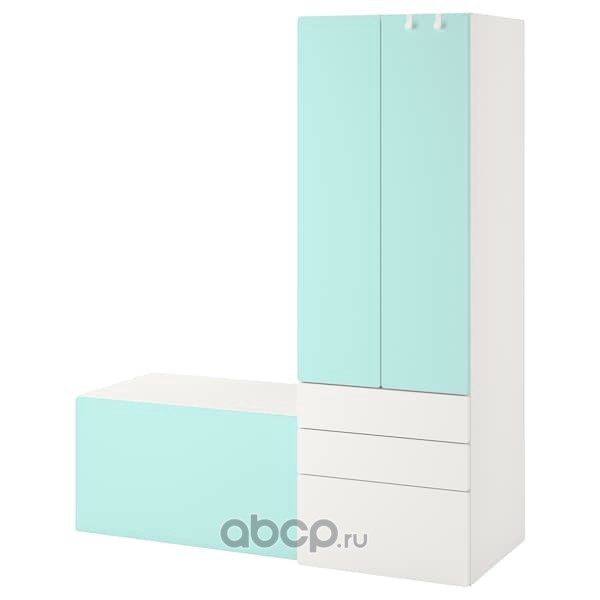 SMÅSTAD СМОСТАД Комбинация д/хранения, белый бледно-бирюзовый/со скамьей 150x57x181см