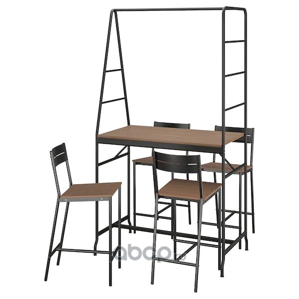 HÅVERUD ХОВЕРЮД / SANDSBERG САНДСБЕРГ Стол и 4 табурета, черный/коричневая морилка 105см