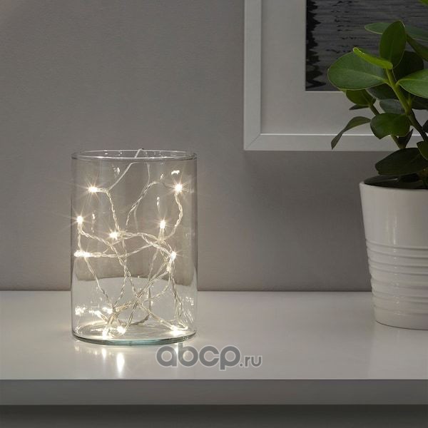 LEDFYR ЛЕДФИР Гирлянда, 12 светодиодов, для помещений/с батарейным питанием серебристый