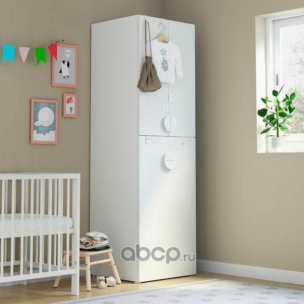 SMÅSTAD СМОСТАД Гардероб с выдвижным модулем, белый белый/с платяной штангой 60x57x196см