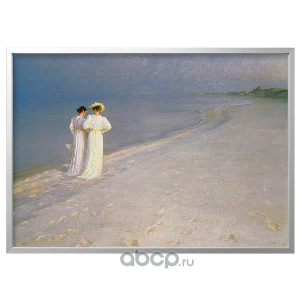 BJÖRKSTA БЬЁРКСТА Картина с рамой, Летний вечер на пляже Скагена/цвет алюминия 140X100см