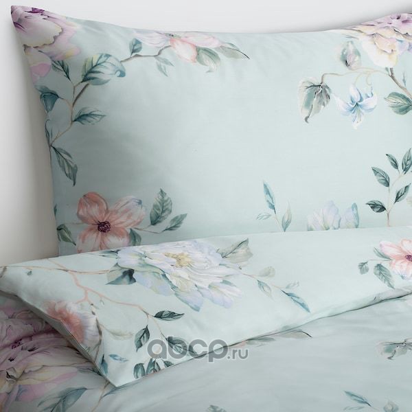 PLATTMAL ПЛАТТМАЛ Пододеяльник и 1 наволочка, цветочный орнамент/зеленый150x200/50x70 см
