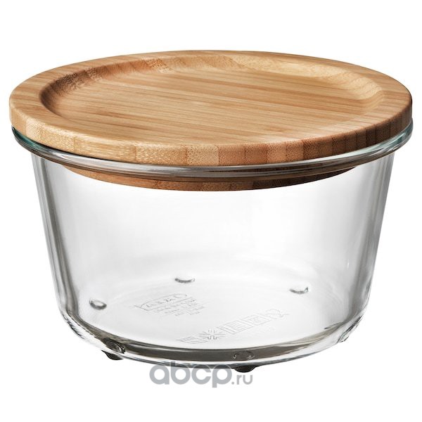 IKEA 365+ ИКЕА/365+ Контейнер для продуктов с крышкой, круглой формы стекло/бамбук 600мл