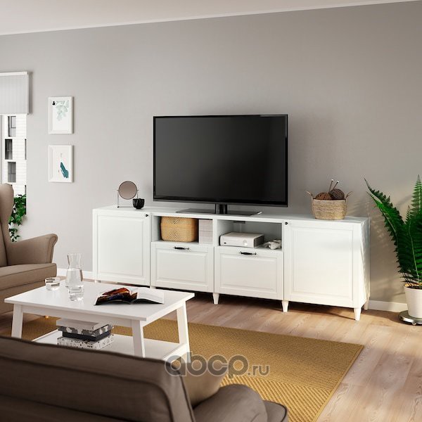 BESTÅ БЕСТО Тумба под ТВ, с дверцами и ящиками, белый/СМЕВИКЕН/КАББАРП белый 240x42x74см