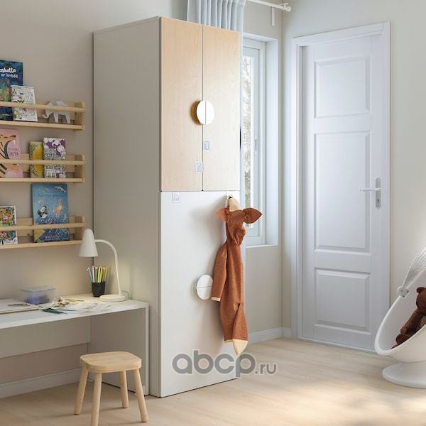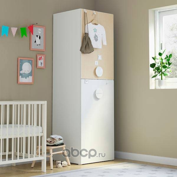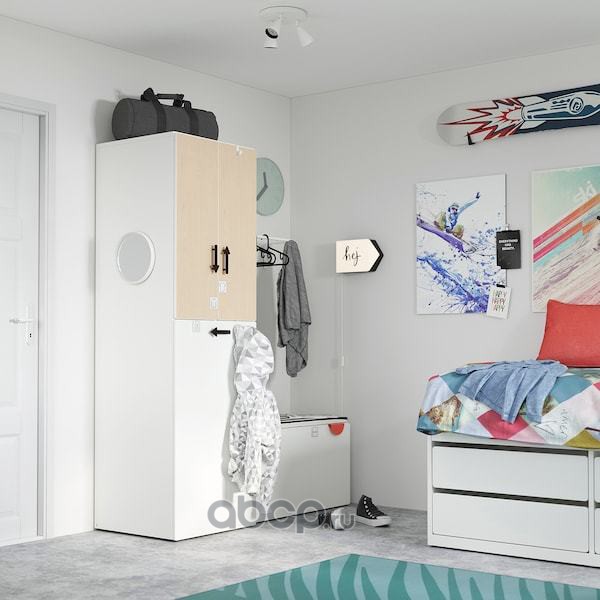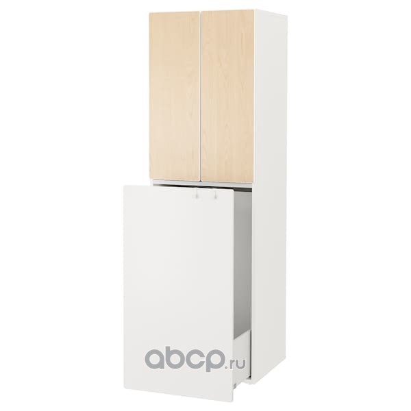 SMÅSTAD СМОСТАД Гардероб с выдвижным модулем, белый береза/с платяной штангой 60x57x196см