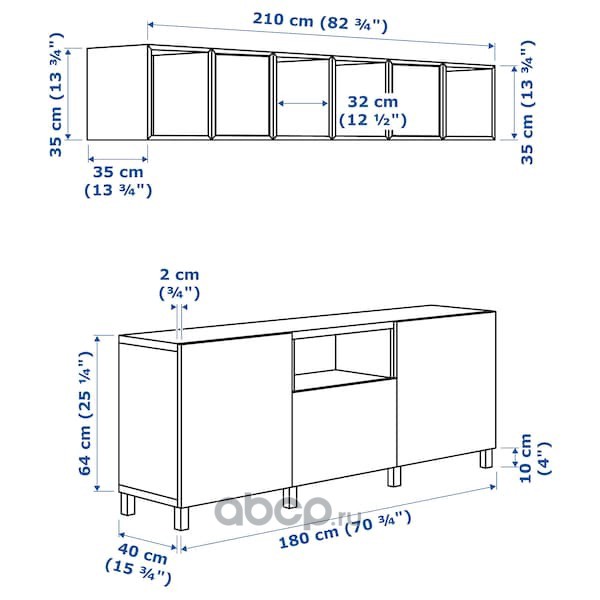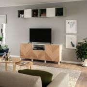 BESTÅ БЕСТО Тумба под ТВ с ящиками и дверцей, белый/бьёркёвикен березовый шпон 180X42X39см