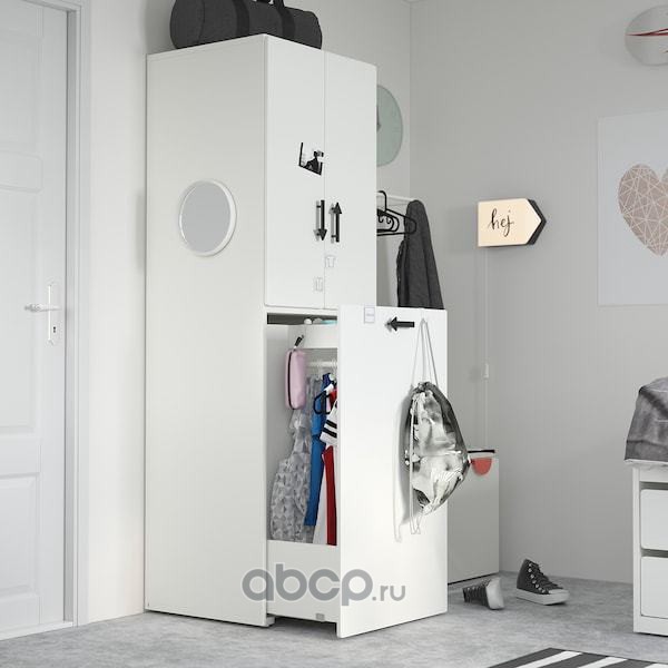 SMÅSTAD СМОСТАД Гардероб с выдвижным модулем, белый с рамой/с платяной штангой 60x57x196см