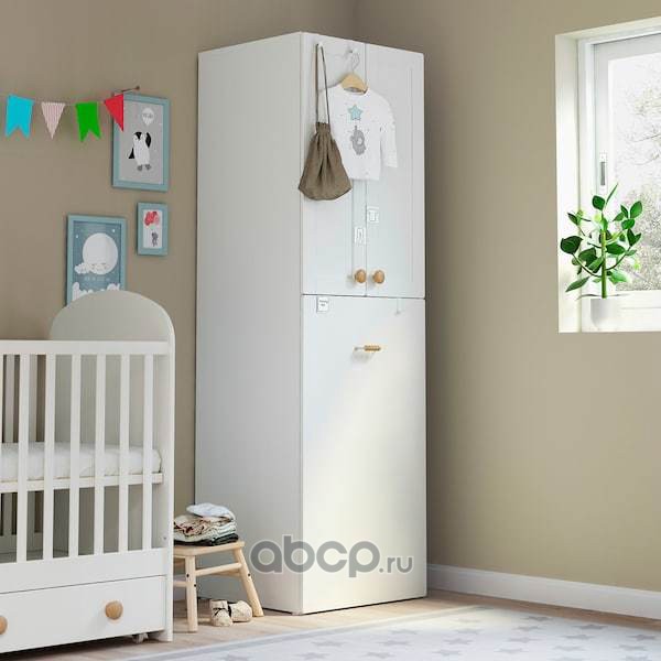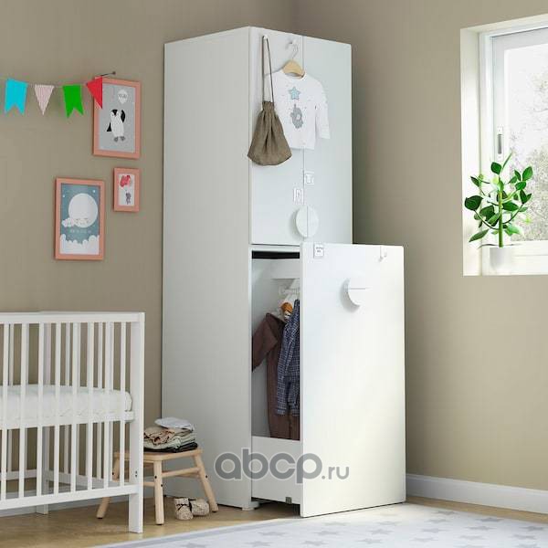 SMÅSTAD СМОСТАД Гардероб с выдвижным модулем, белый пробка/с платяной штангой 60x57x196см