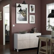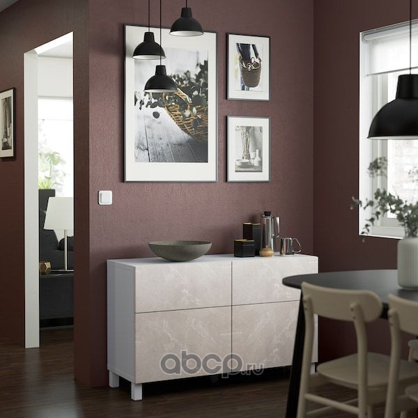 BESTÅ БЕСТО Комб для хран с дверц/ящ, белый БЕРГСВИКЕН/СТУБ/бежевый под мрамор 120X42X74см