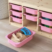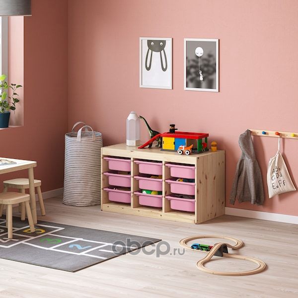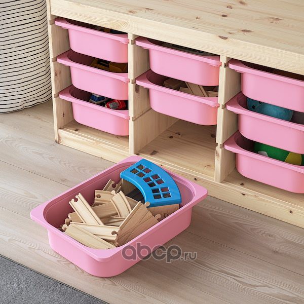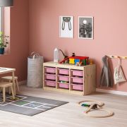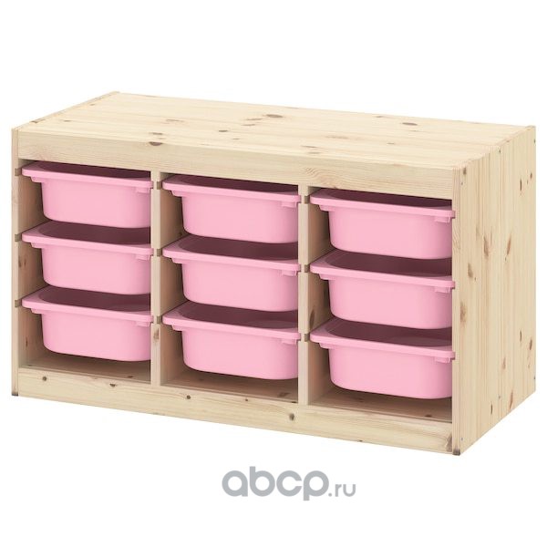 TROFAST ТРУФАСТ Комбинация д/хранения+контейнеры, светлая беленая сосна/розовый 94X44X52см