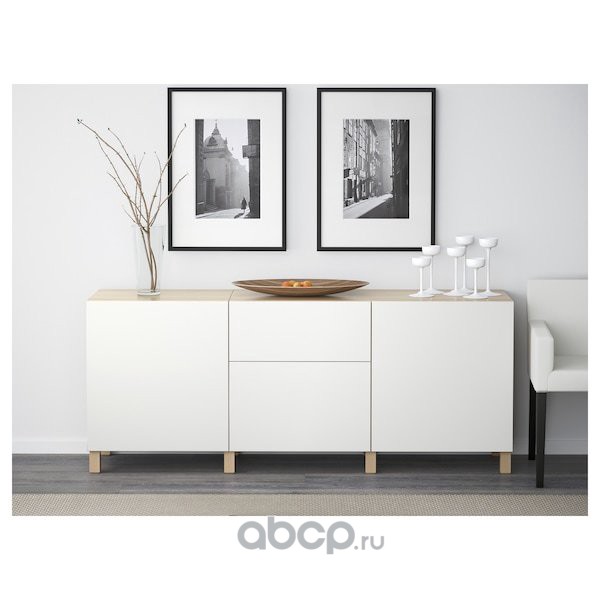 BESTÅ БЕСТО Комбинация для хранения с ящиками, под беленый дуб/Лаппвикен белый 180X40X74 см