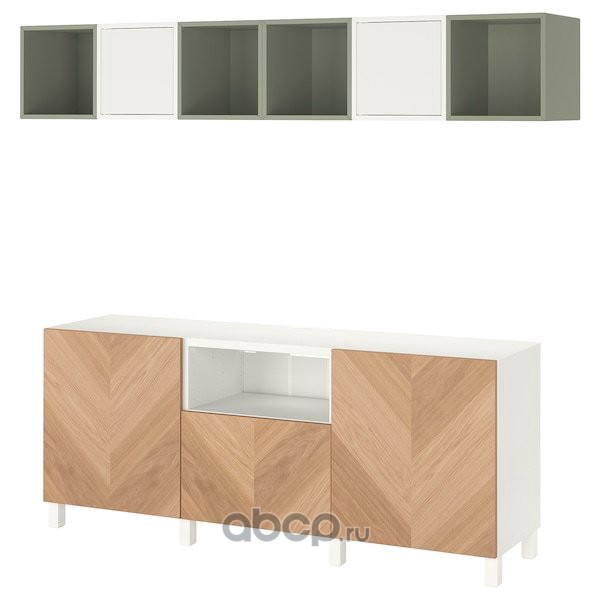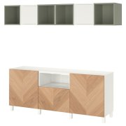 BESTÅ БЕСТО / EKET ЭКЕТ Комбинация для ТВ, белый/светло-зеленый/дубовый шпон 210X40X220см