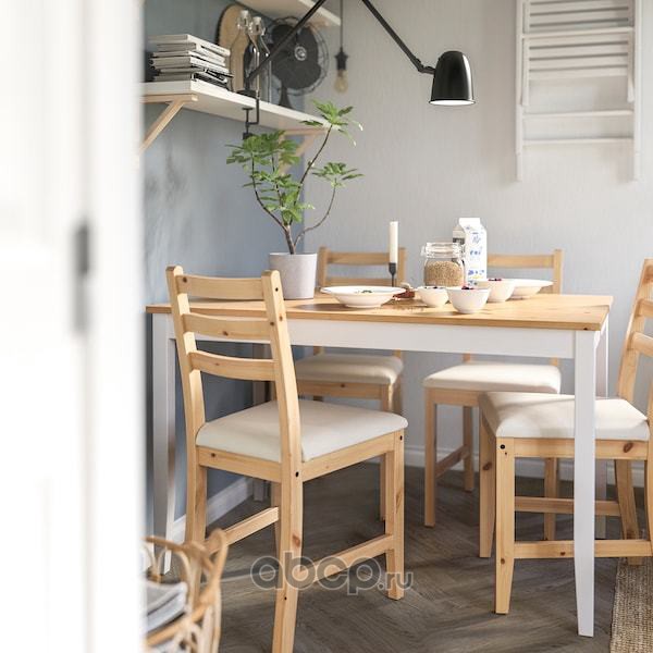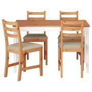 LERHAMN ЛЕРХАМН Стол и 4 стула, светлая морилка антик белая морилка/Рамна бежевый 118X74см