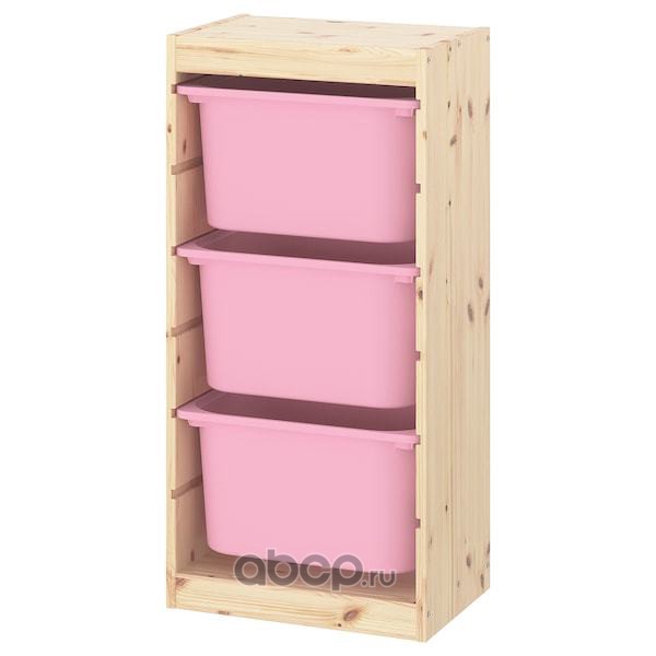 TROFAST ТРУФАСТ Комбинация д/хранения+контейнеры, светлая беленая сосна/розовый 44X30X91см
