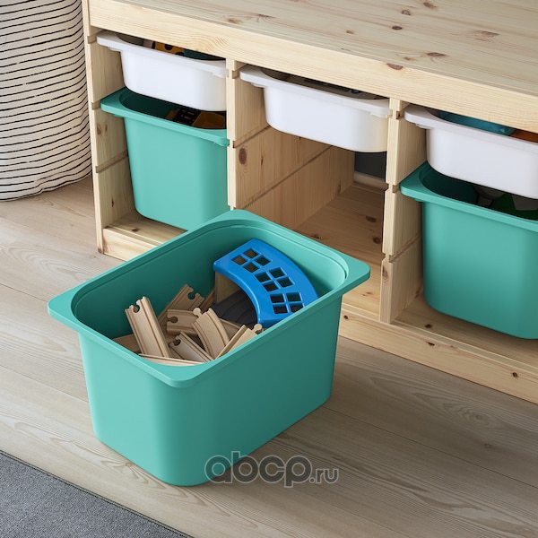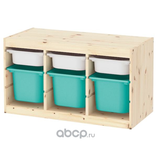 TROFAST ТРУФАСТ Комбинация д/хранения+контейнеры, светлая беленая сосна белый/бирюзовый 94X44X52см