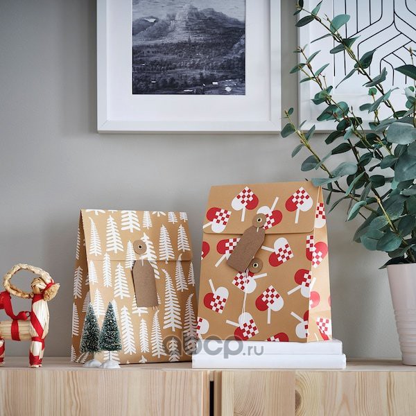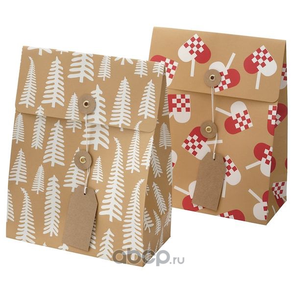 VINTER 2021 ВИНТЕР 2021 Подарочный пакет, орнамент «сердечки»/орнамент «дерево» коричневый 20X26см