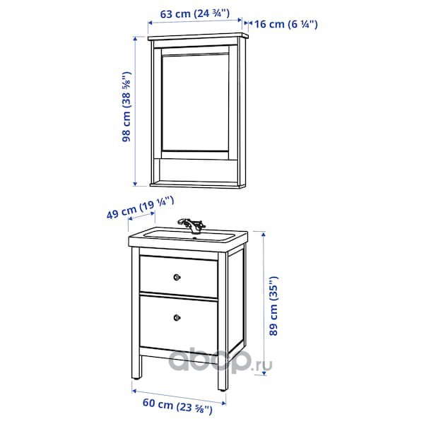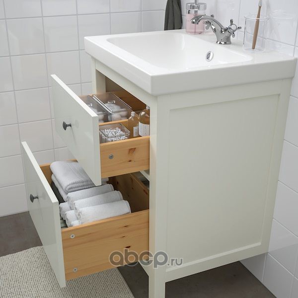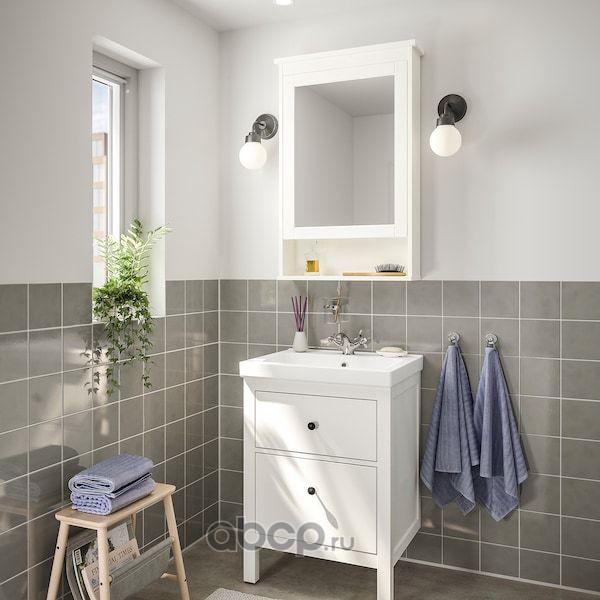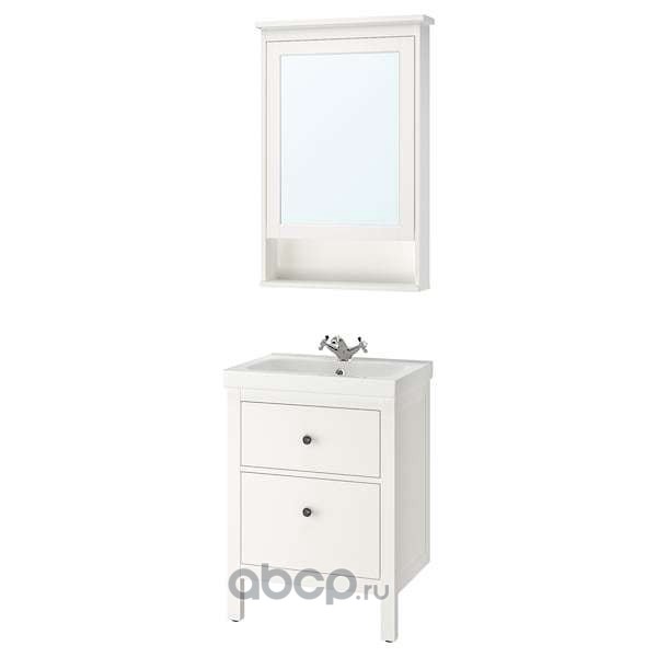 HEMNES ХЕМНЭС / ODENSVIK ОДЕНСВИК Комплект мебели для ванной,4 предм., белый/РУНШЕР смеситель 63см