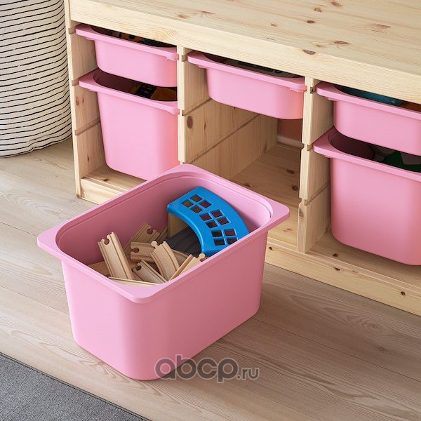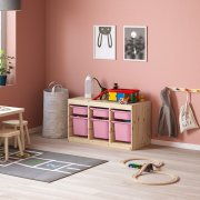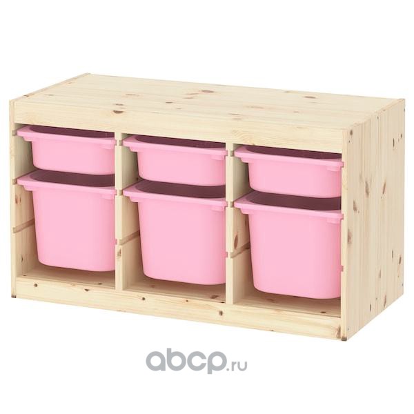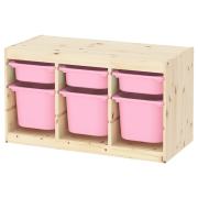 TROFAST ТРУФАСТ Комбинация д/хранения+контейнеры, светлая беленая сосна розовый/розовый 94X44X52см