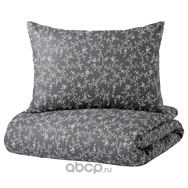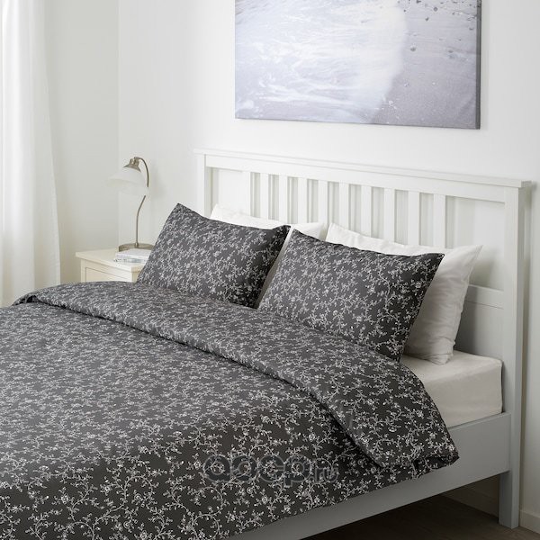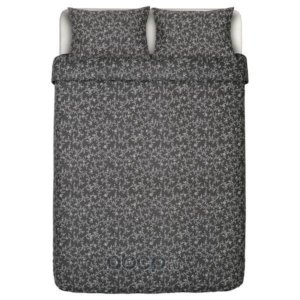 KOPPARRANKA КОППАРРАНКА Пододеяльник и 2 наволочки, цветочный орнамент/темно-серый 200x200/50x70 см