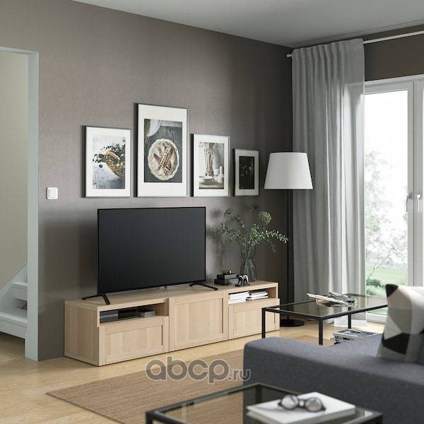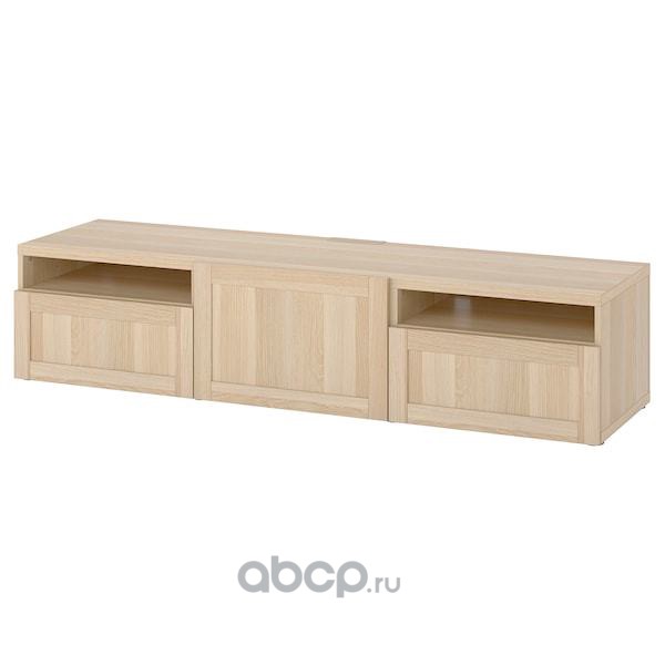 BESTÅ БЕСТО Тумба под ТВ с ящиками и дверцей, под беленый дуб/Ханвикен под беленый дуб 180x42x39см