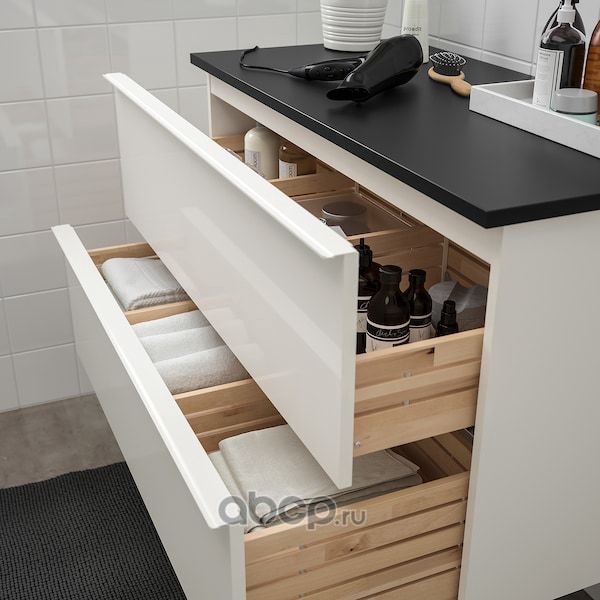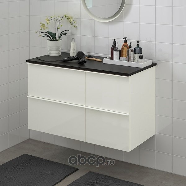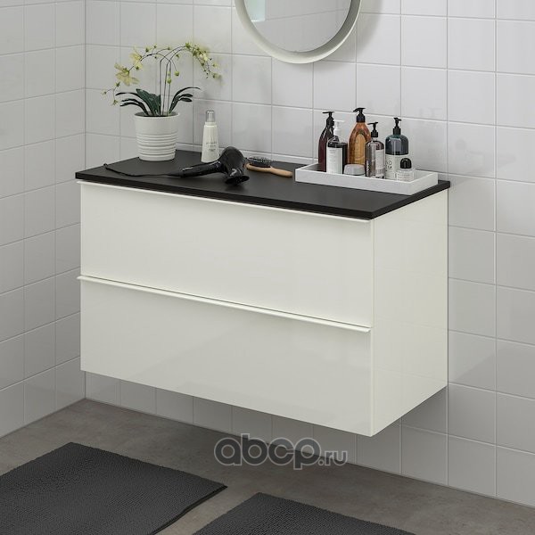 GODMORGON ГОДМОРГОН / TOLKEN ТОЛКЕН Шкаф для раковины с 2 ящ, глянцевый белый/антрацит 102X49X60см