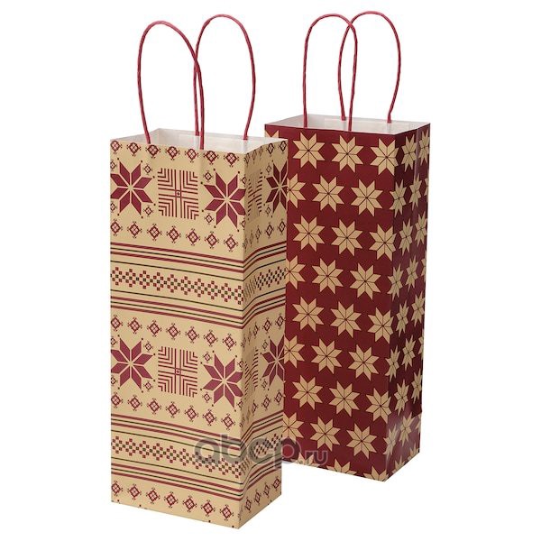VINTER 2021 ВИНТЕР 2021 Подарочная упаковка для бутылки, орнамент «звезды» красный/бежевый 13X32см