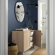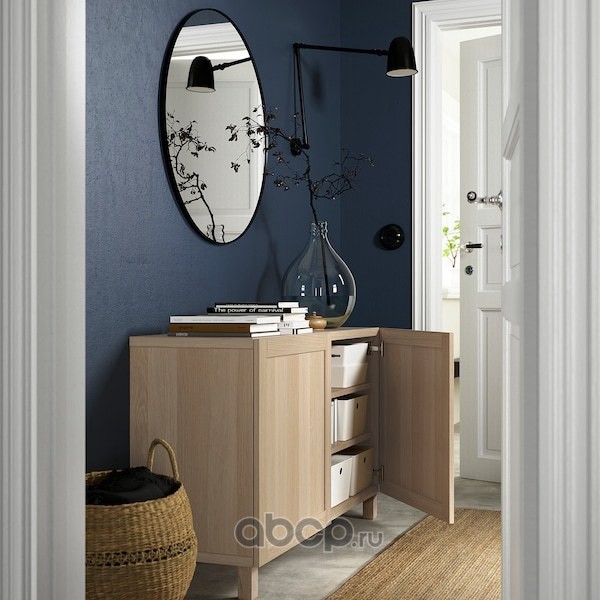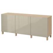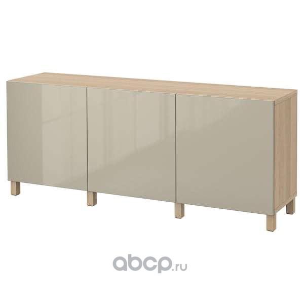 BESTÅ БЕСТО Комбинация для хранения с дверцами, под беленый дуб/сельсв/стуббарп глянцевый/бежевый 180x42x74см