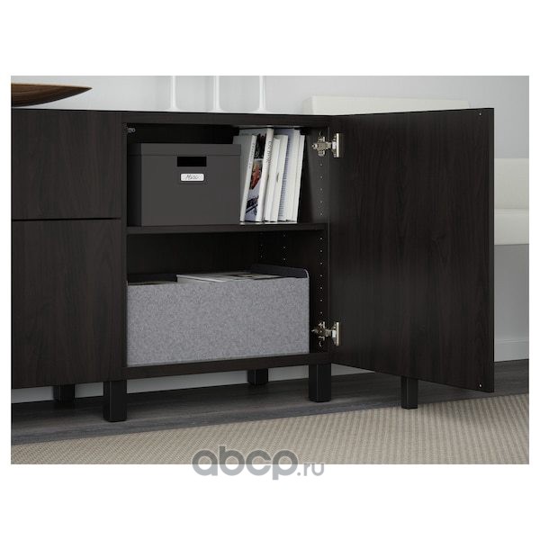 BESTÅ БЕСТО Комбинация для хранения с ящиками, черно-коричневый/сельсв/стуббарп глянцевый/черный 180X42X74см