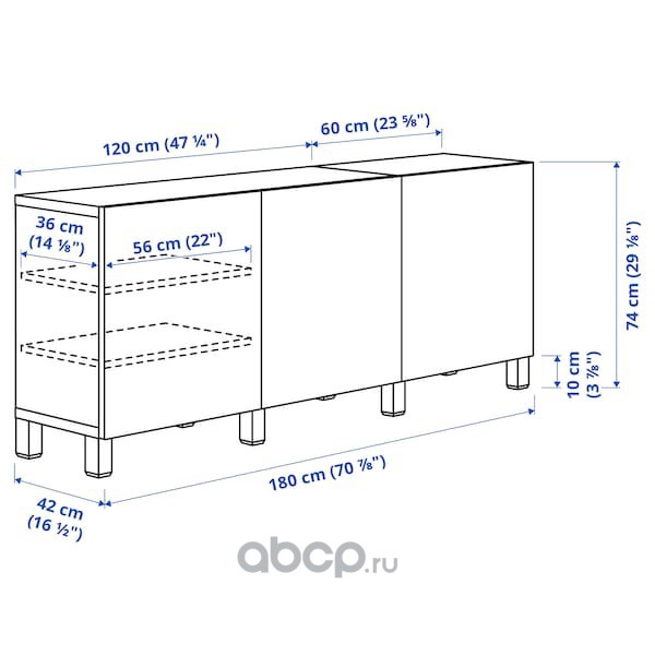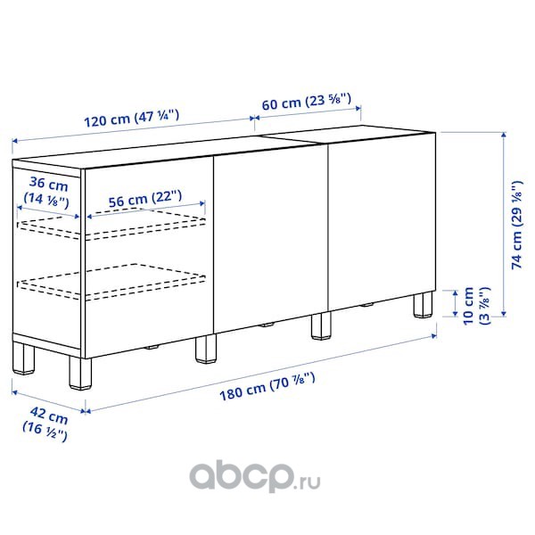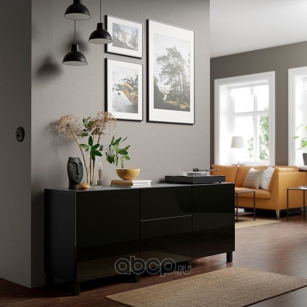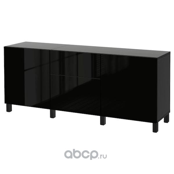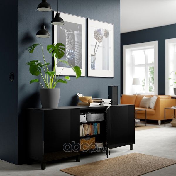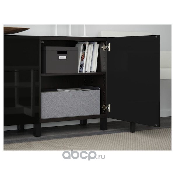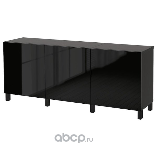 BESTÅ БЕСТО Комбинация для хранения с дверцами, черно-коричневый/сельсв/стуббарп глянцевый/черный 180X42X74см
