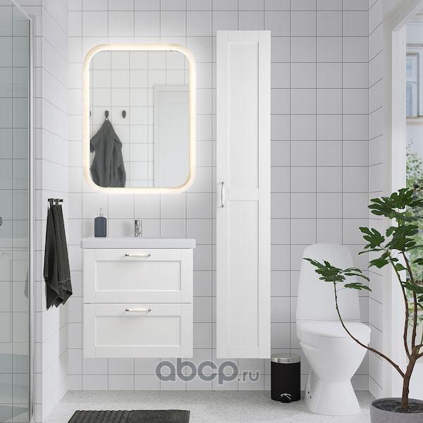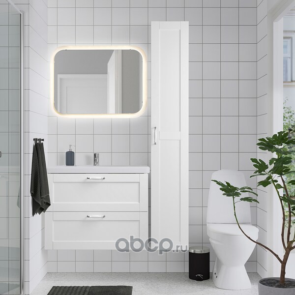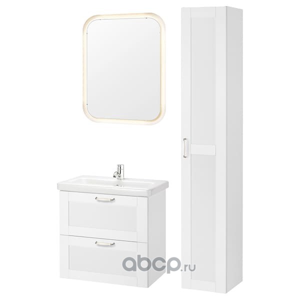 FISKÅN ФИСКОН / TVÄLLEN ТВЭЛЛЕН Комплект мебели для ванной,8 предм., Йельсен белый/ПИЛКОН смеситель 64X43X65см