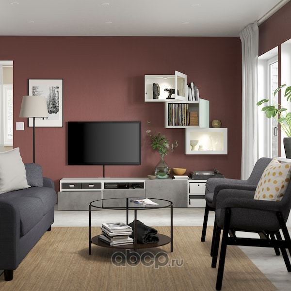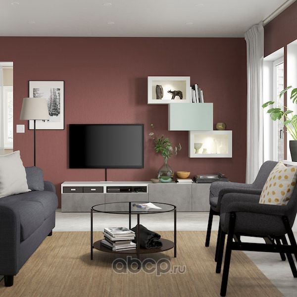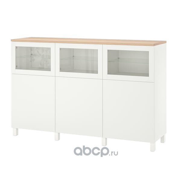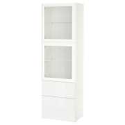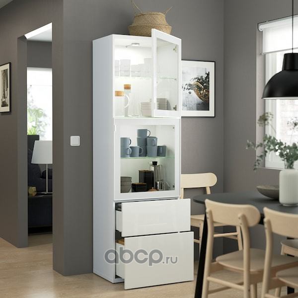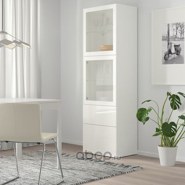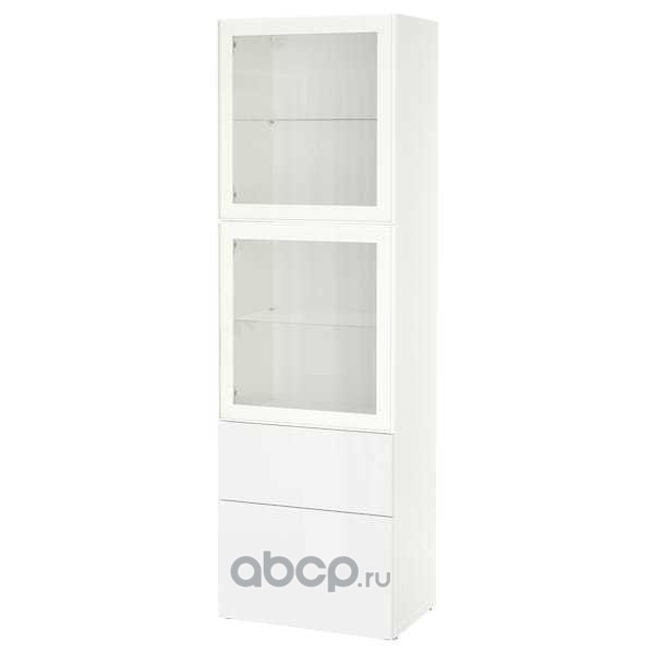 BESTÅ БЕСТО Комбинация д/хранения+стекл дверц, белый/Сельсвикен глянцевый/белый прозрачное стекло 60X42X193см